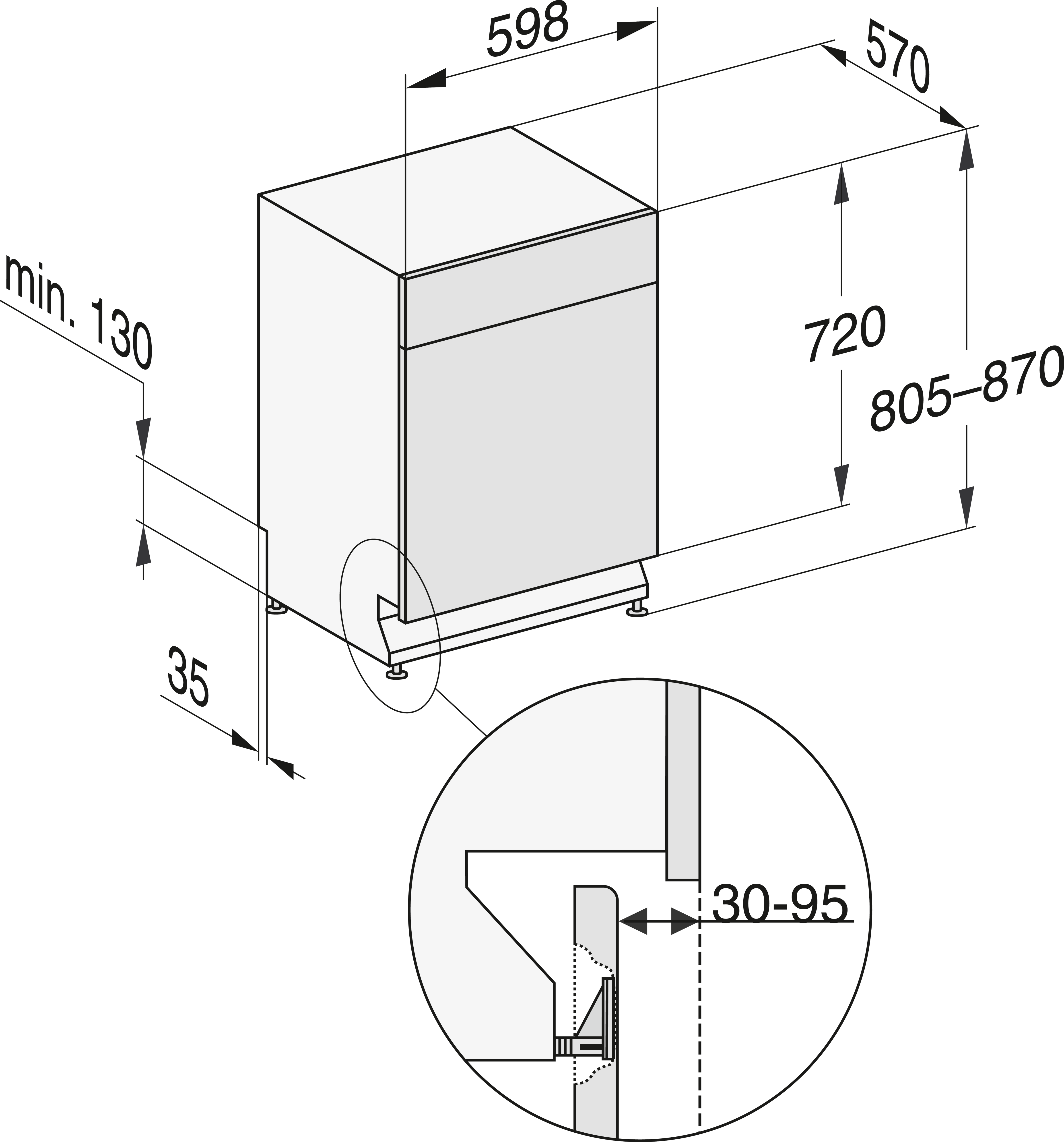 встраиваемая посудомоечная машина с установкой под столешницу