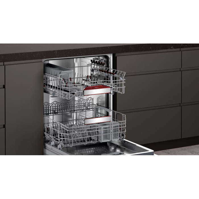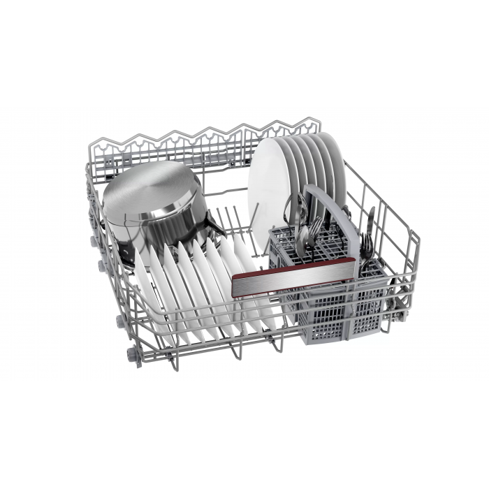 Gap Light/ Складывающиеся направляющие длятарелок в верхнем коробе (4x)/ Складные направляющие для тарелок внижнем коробе (4)/ Полка для длинных ножей в верхнем коробе/ Корзина для столовых приборов в нижнемкоробе