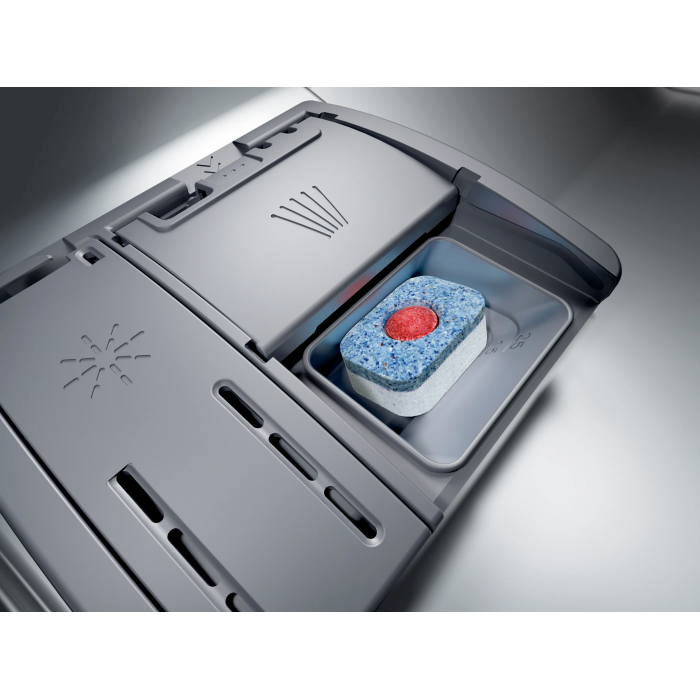 Специальный отсек DosageAssist в ручке короба обеспечивает своевременное и равномерное растворение комбинированных моющих средств (таблеток и капсул)