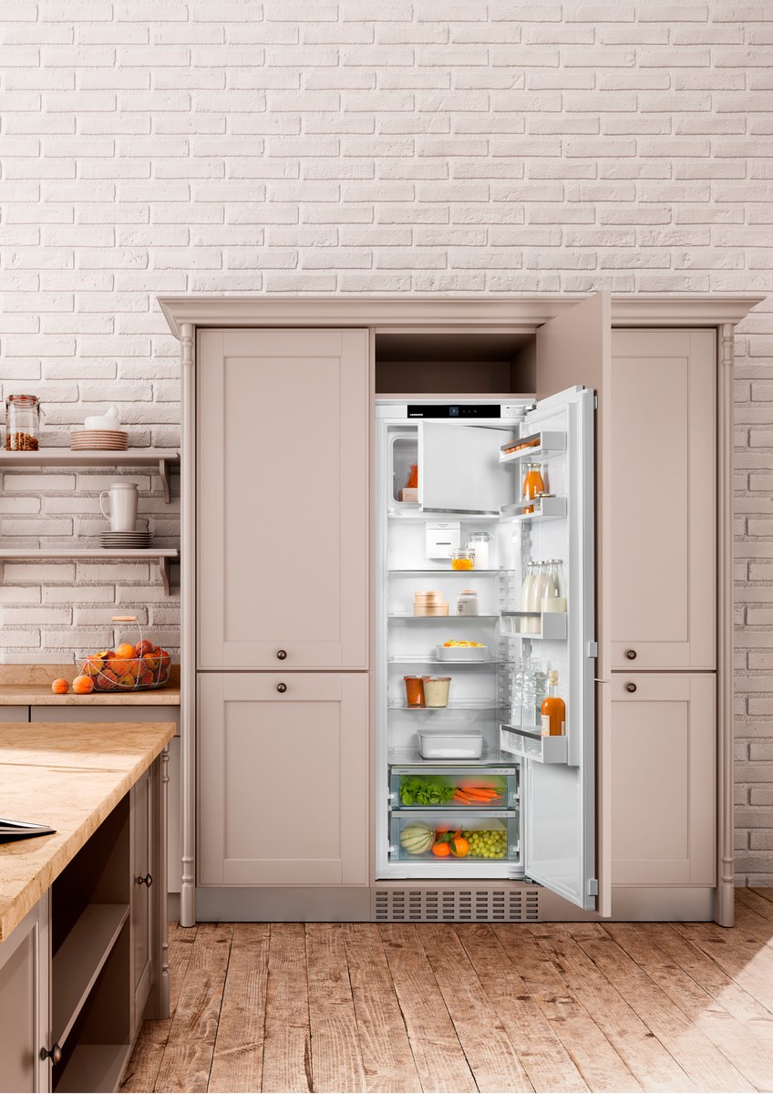 Хотите, чтобы домашний фруктовый пирог оставался свежим? Или приготовленная пицца, которую нужно будет поставить в духовку позже? Просто вставьте противень в ваш Liebherr – в нём достаточно места для хранения противня. Особенно практично: противень можно задвигать и выдвигать при открытой на 90° двери.