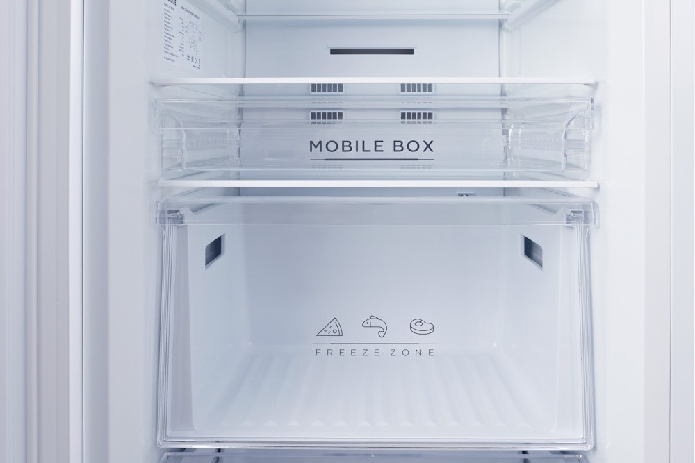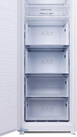 Профессиональный морозильник (212 л) с системой No Frost. 4 стеклянные полки и 4 выдвижных ящика. Две температурные зоны, сенсорное управление. Сигнализация открытой двери. Энергопотребление A++.
