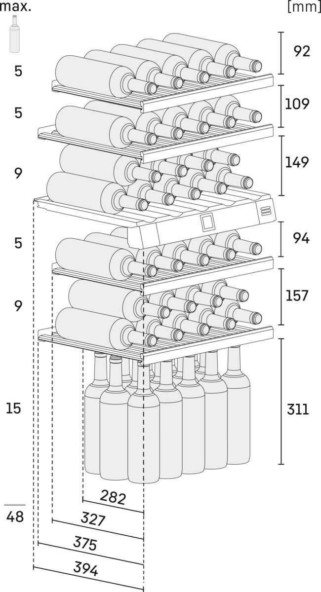 Оптимальная влажность воздуха – это один из важнейших критериев для правильного хранения вин. Это позволяет сохранить эластичность пробок и предотвращает их высыхание. Чтобы пробка не высыхала, бутылки следует хранить в горизонтальном положении. Благодаря постоянно поддерживаемой влажности 50 % винные шкафы создают идеальные условия для хранения вина. Влажность воздуха в винных климатических шкафах может по потребности регулироваться при помощи кнопки вентиляции.