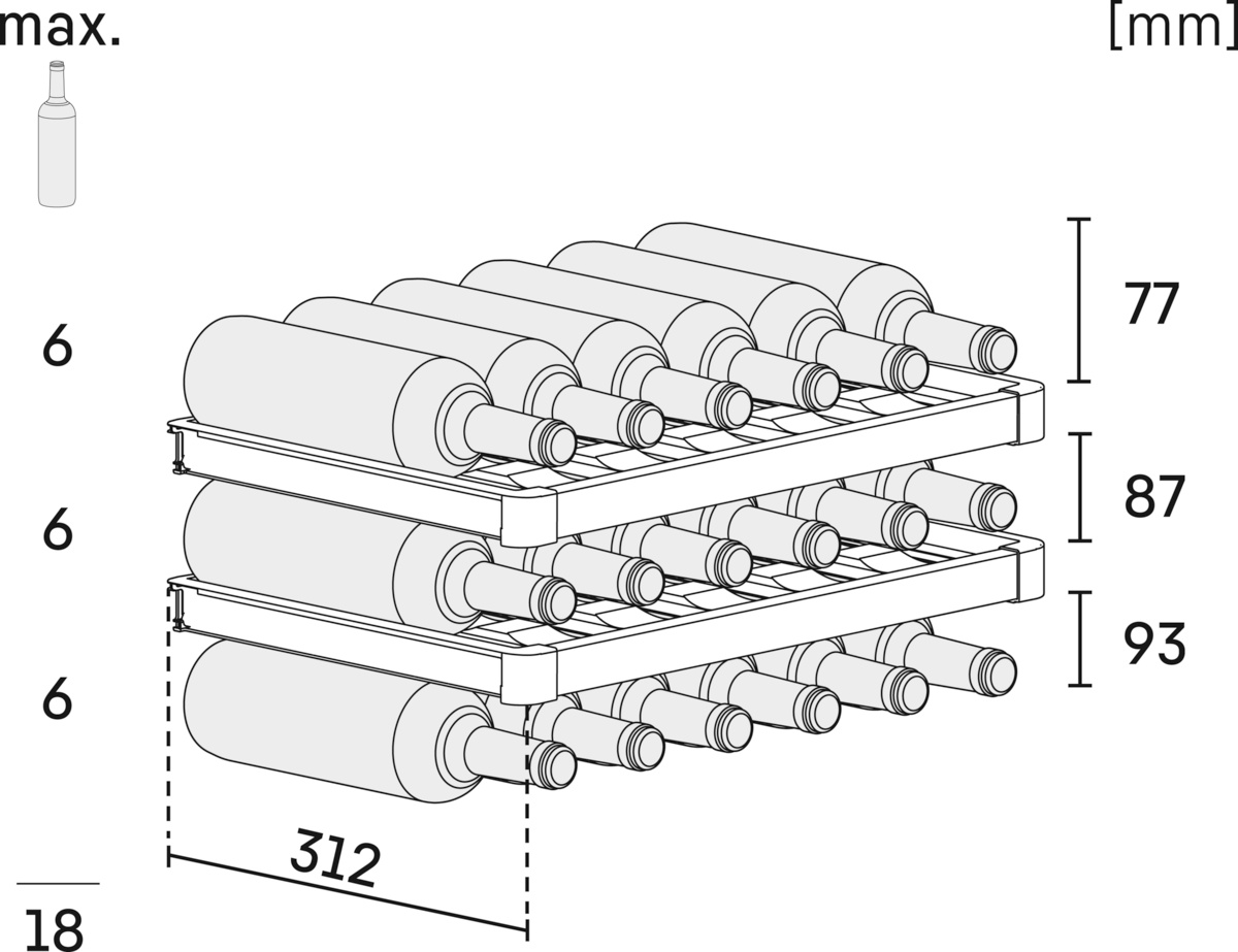 высота 45x55.7 см, вместимость 18 бутылок