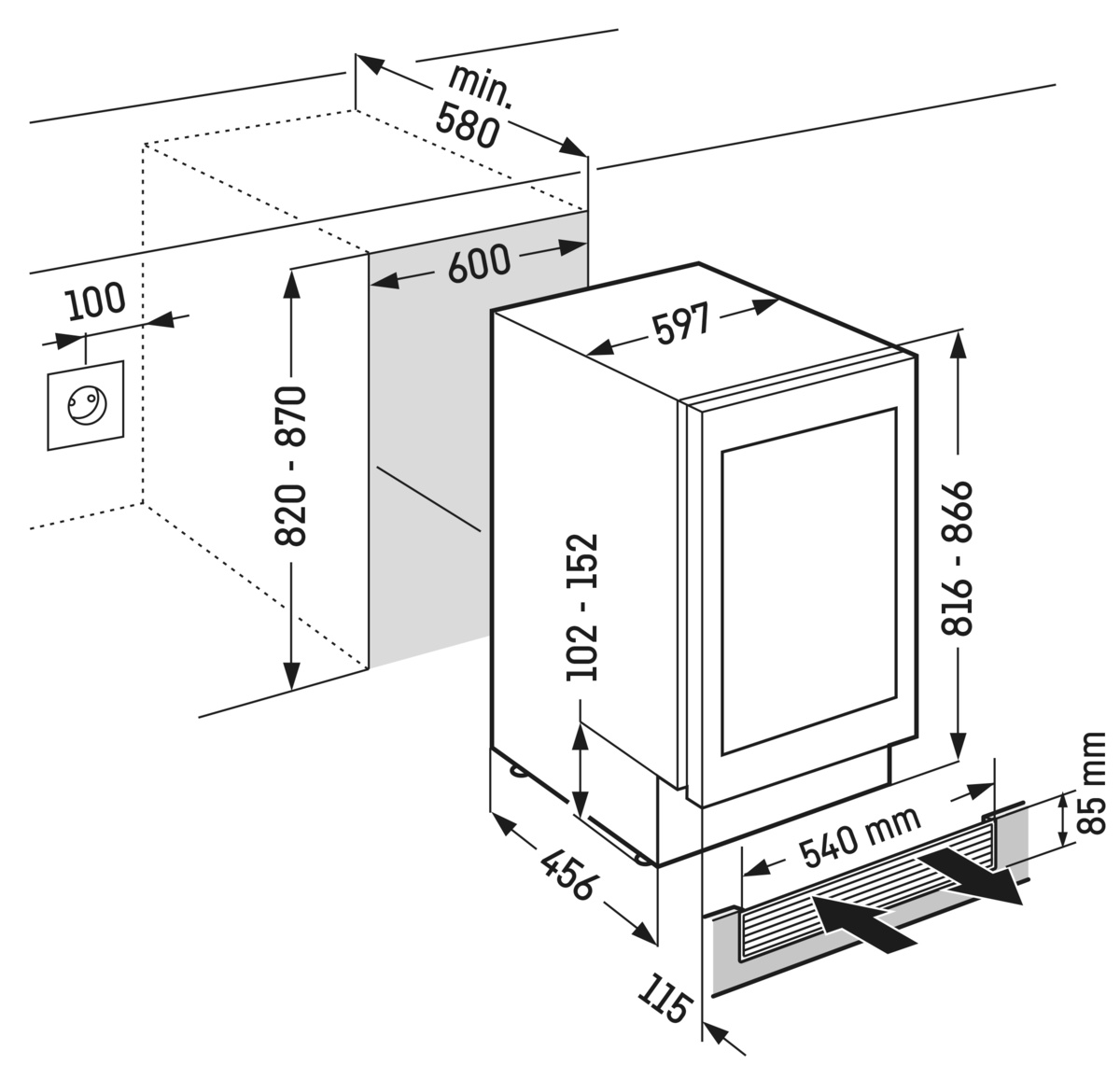 Температура хранения вина устанавливается на панели управления, а цифровой индикатор покажет действительную температуру с точностью до градуса. Звуковая и визуальная сигнализация информирует об открытой двери и/или изменении температуры внутри винного шкафа. Панель управления оснащена функцией блокировки, чтобы избежать изменения параметров настройки детьми.