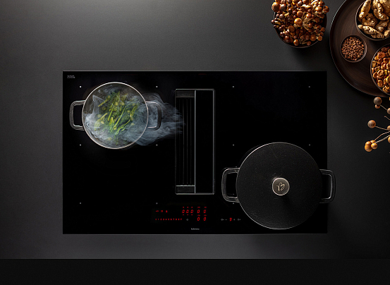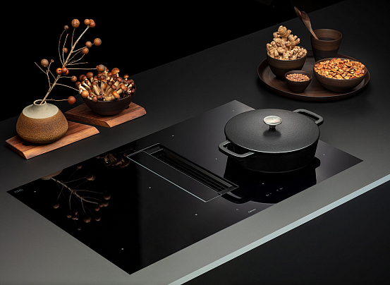 Итальянская варочная панель из стеклокерамики черного цвета. Компактные размеры (84.1×52×20.9 см). Современный элегантный дизайн.