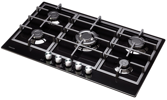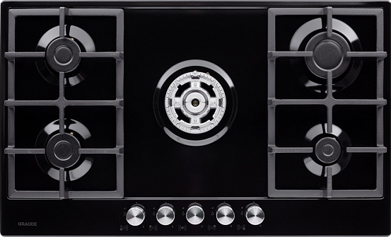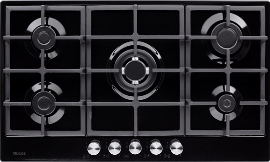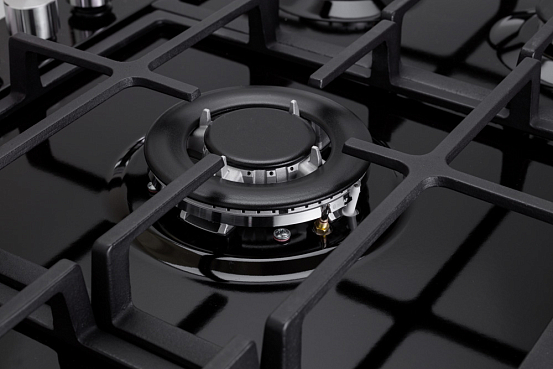 Стильная газовая панель шириной 90 см в черном цвете с 5 конфорками разной мощности, включая WOK. Эмалированная поверхность устойчива к повреждениям, а чугунные решетки надежно удерживают посуду. Автоматический электроподжиг и система «GasControl» обеспечивают безопасность и комфорт.