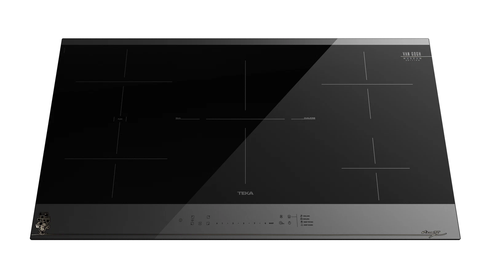 Эта 90-сантиметровая индукционная панель из эксклюзивной коллекции Van Gogh станет настоящим произведением искусства на вашей кухне. Черная стеклокерамическая поверхность Quartzuim Glaskeramik® с изысканной шелкографией – подписью художника и эскизом подсолнухов в цвете шампань – придает технике неповторимый художественный шарм, сочетая эстетику с передовыми технологиями.