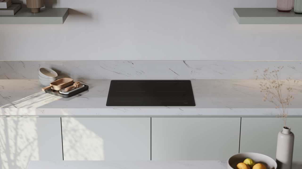 Стеклокерамическая индукционная панель с сенсорным управлением Single Easy Slide™ с центральным слайдером для регулирования мощности индукционных зон нагрева. Панель оснащена 9 ступенями регулировки мощности + режим Booster, двумя парами объединяемых зон Bridge Induction™ и таймером на каждую зону 99 минут.