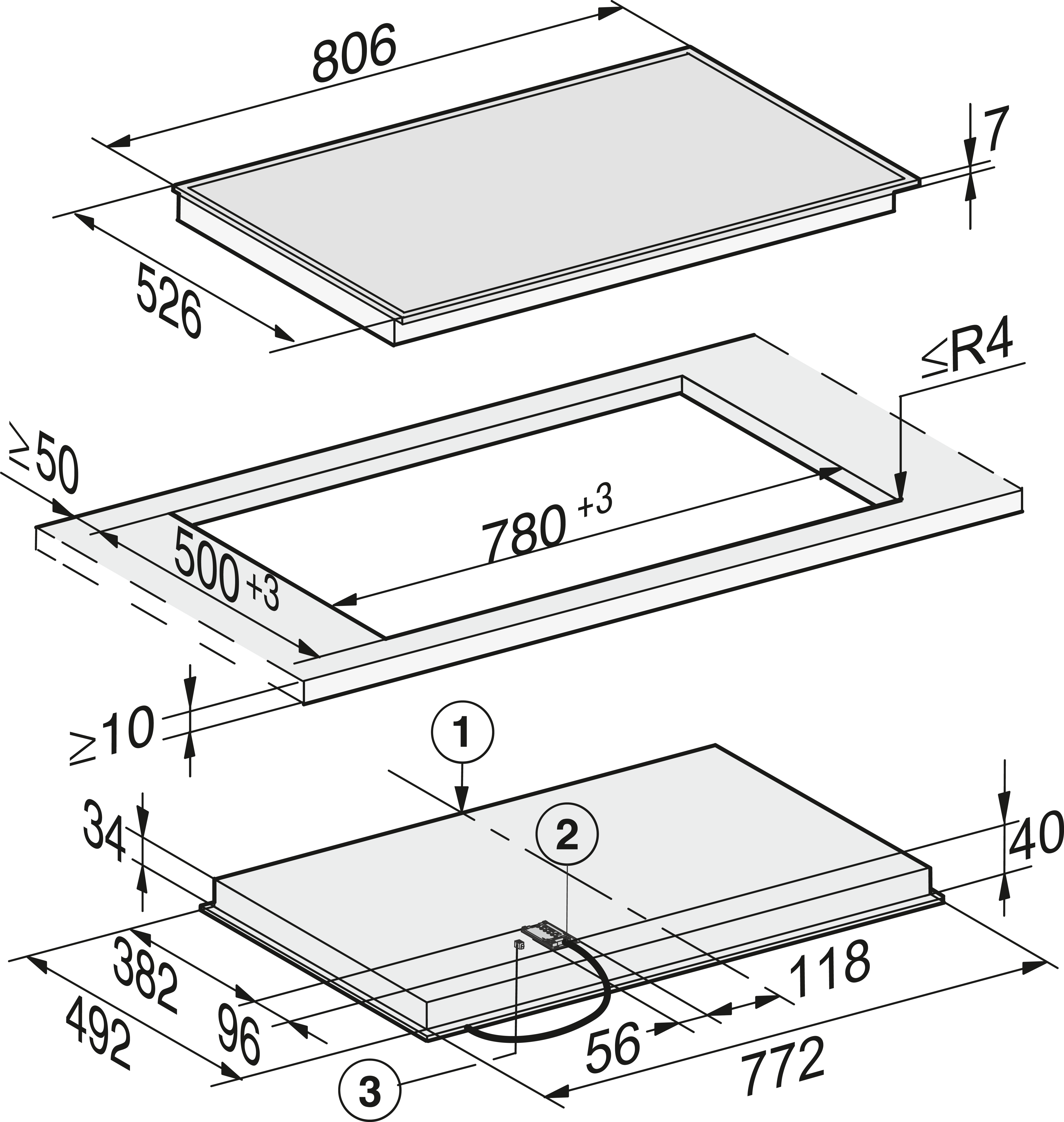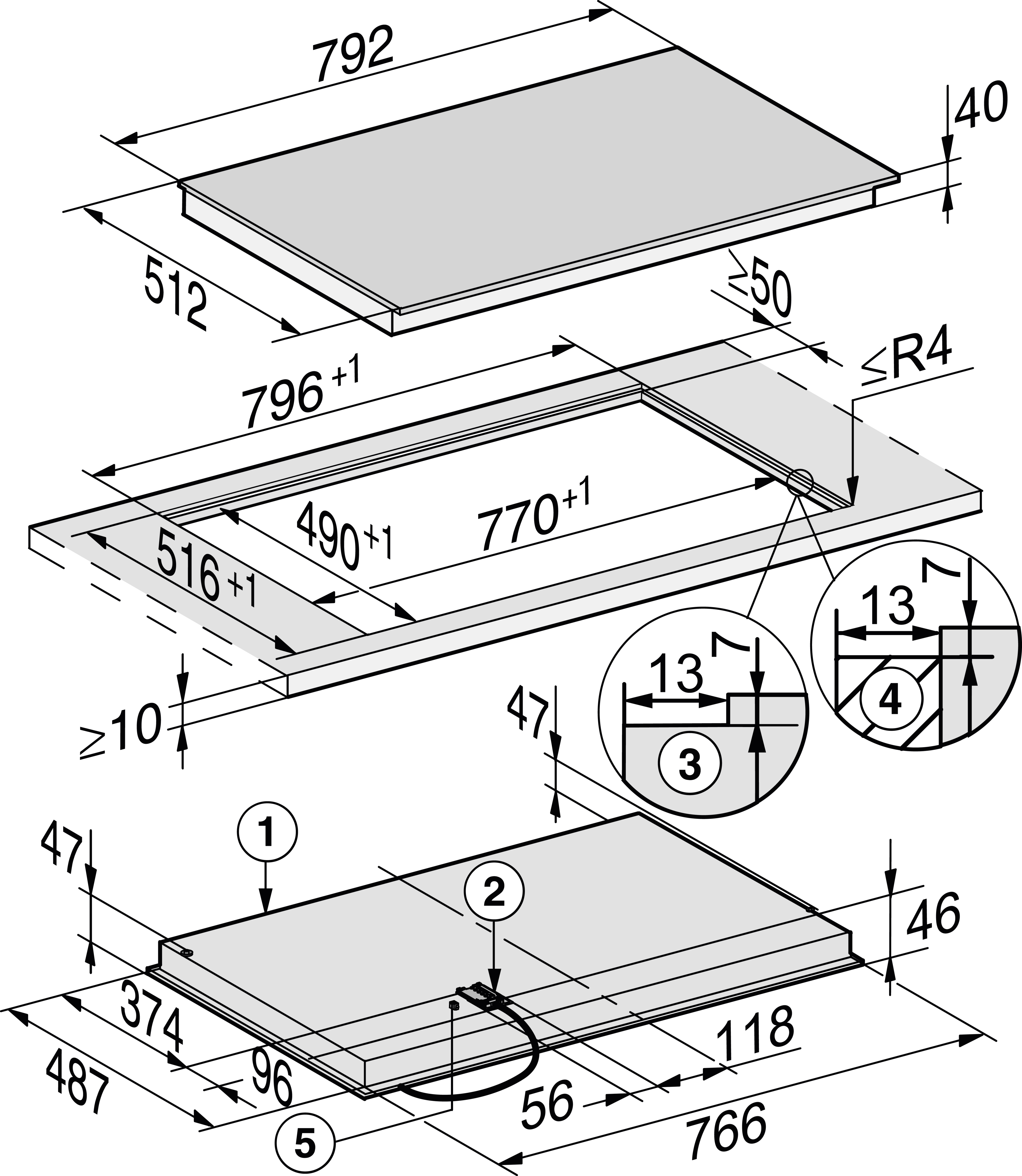 Габариты ниши (Ш x Г): 770/796 x 490/516 (вырез ступенькой)