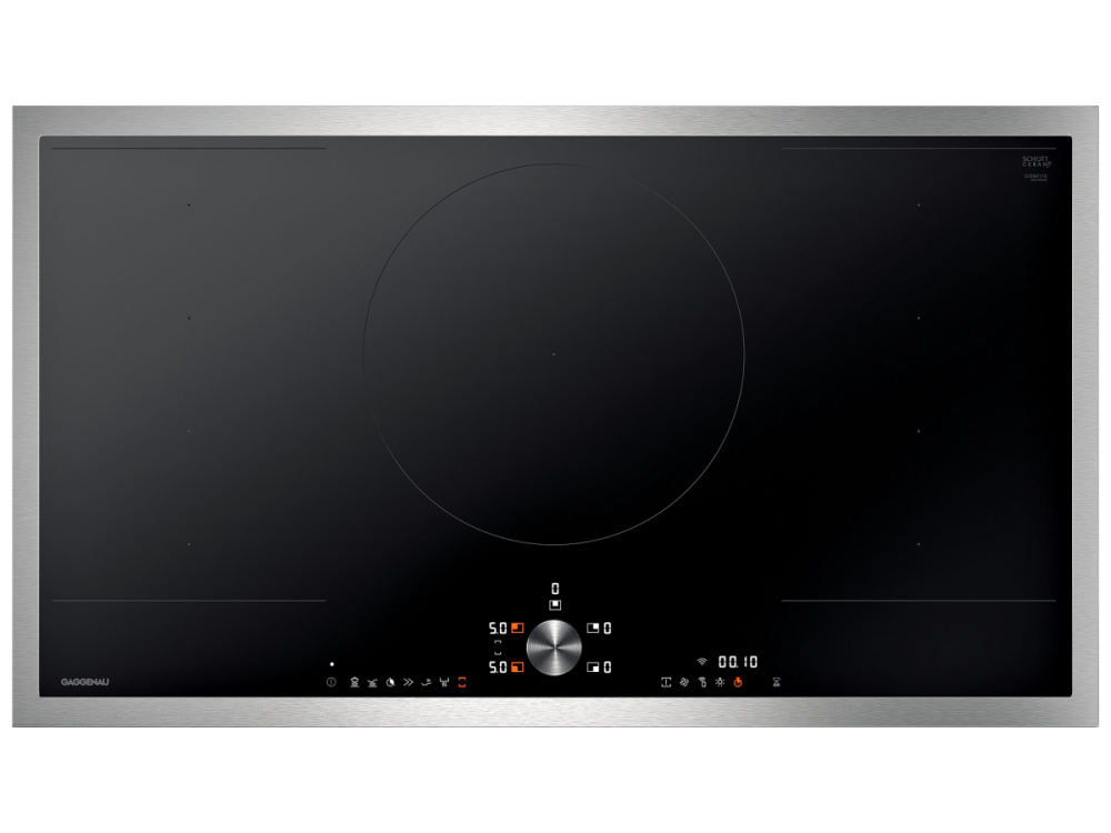 2 комбинируемые индукционные конфорки 19 × 23 см (2200 Вт, с функцией Booster 3700 Вт), при совмещении 38 × 23 см (3300 Вт, с функцией Booster 3700 Вт).