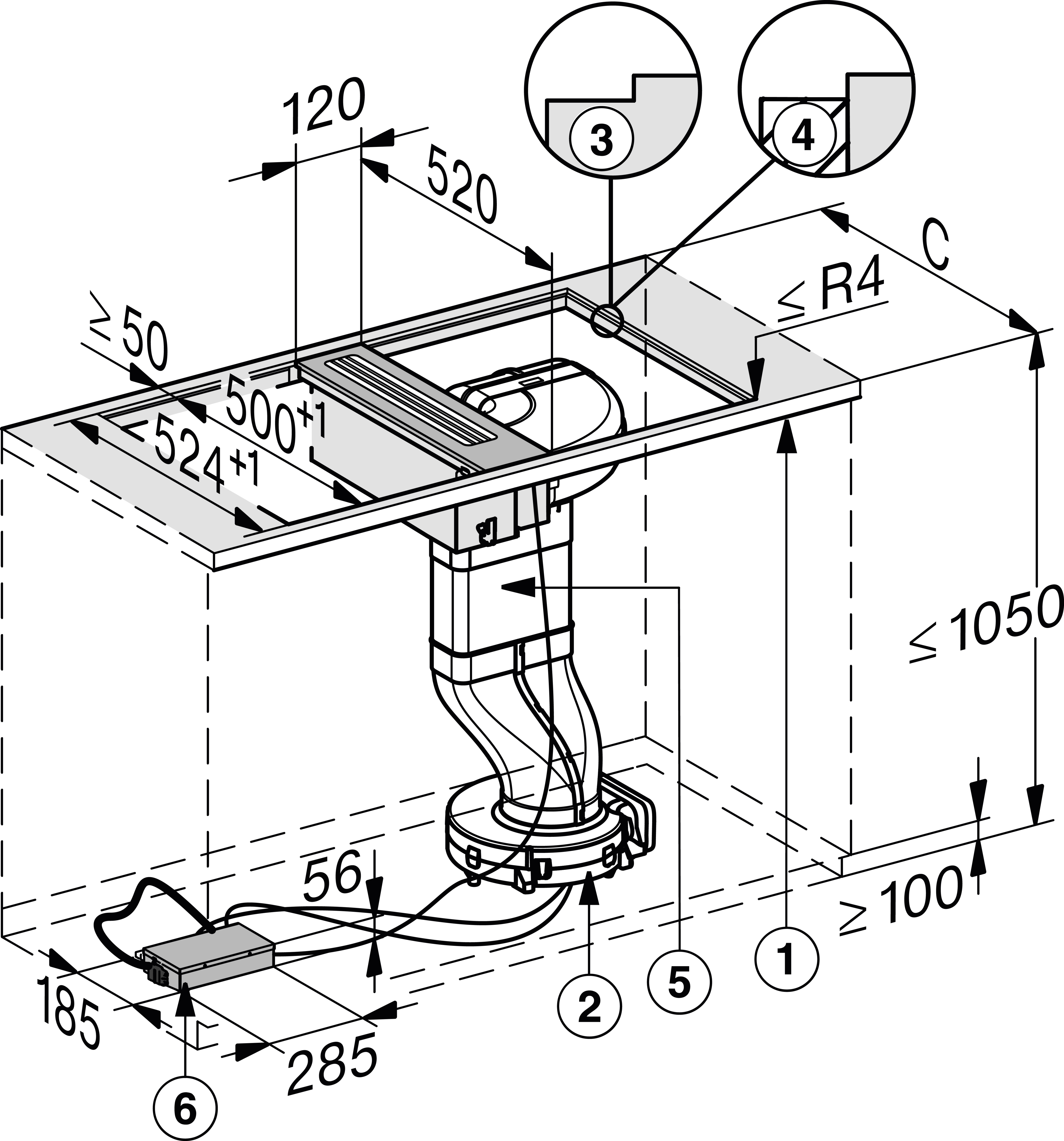 Встраиваемая в столешницу вытяжка