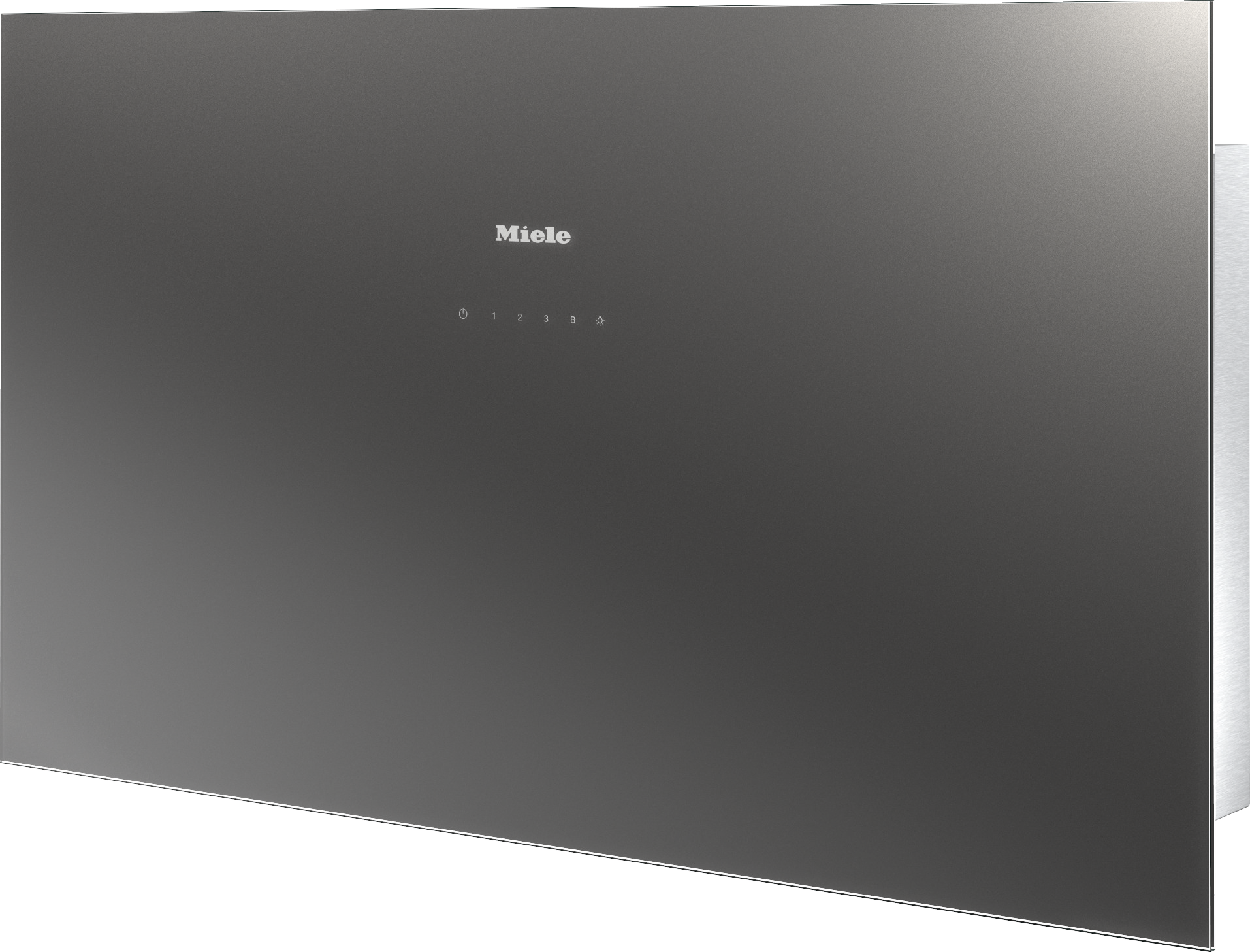 Настенная вытяжка Миле в минималистичном дизайне с вертикальной стеклянной панелью