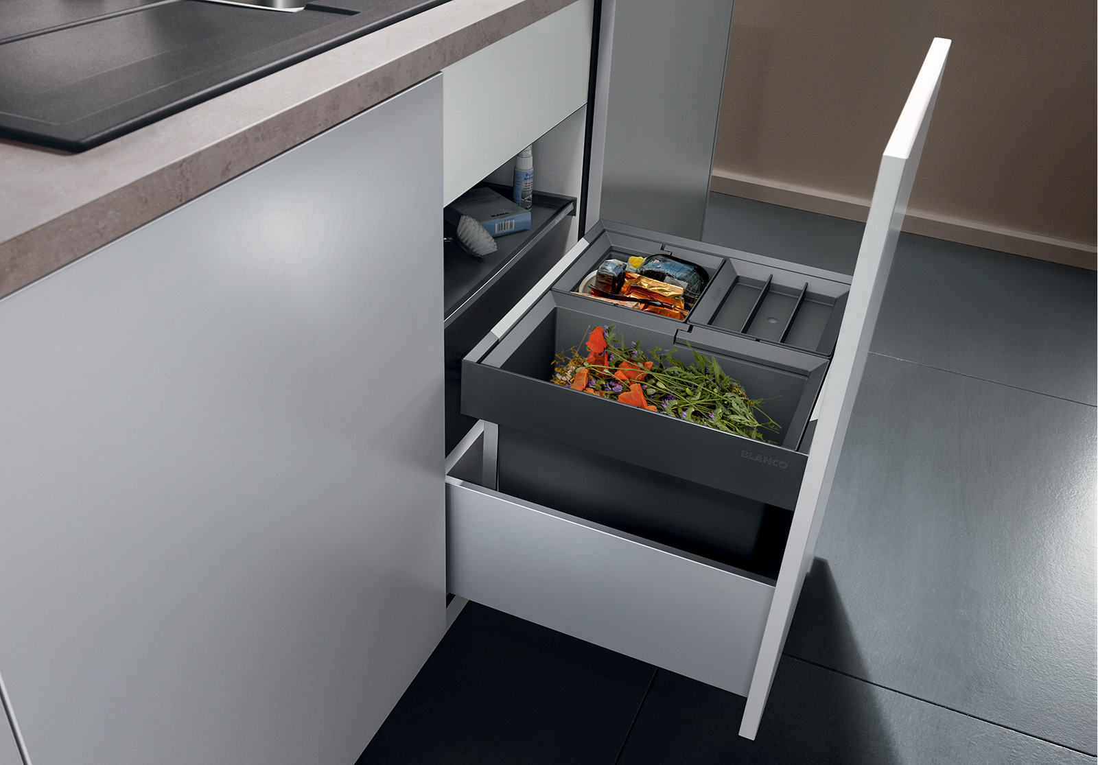 Система сортировки отходов FLEXON II 50/3 от Blanco воплощает философию бескомпромиссного качества, инновационного дизайна и функциональности, превращая самое активное место на кухне в продуманный, эргономичный и эстетичный центр для приготовления пищи.