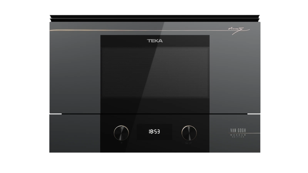 Микроволновая печь ML 82 VG BIS L из эксклюзивной коллекции Van Gogh – это гармоничное сочетание передовых технологий и художественного дизайна. Фасад из черного и темно-серого стекла без рамки украшен изысканной шелкографией с подписью Ван Гога и эскизом подсолнухов в благородном цвете шампань, что придает технике неповторимый шарм.