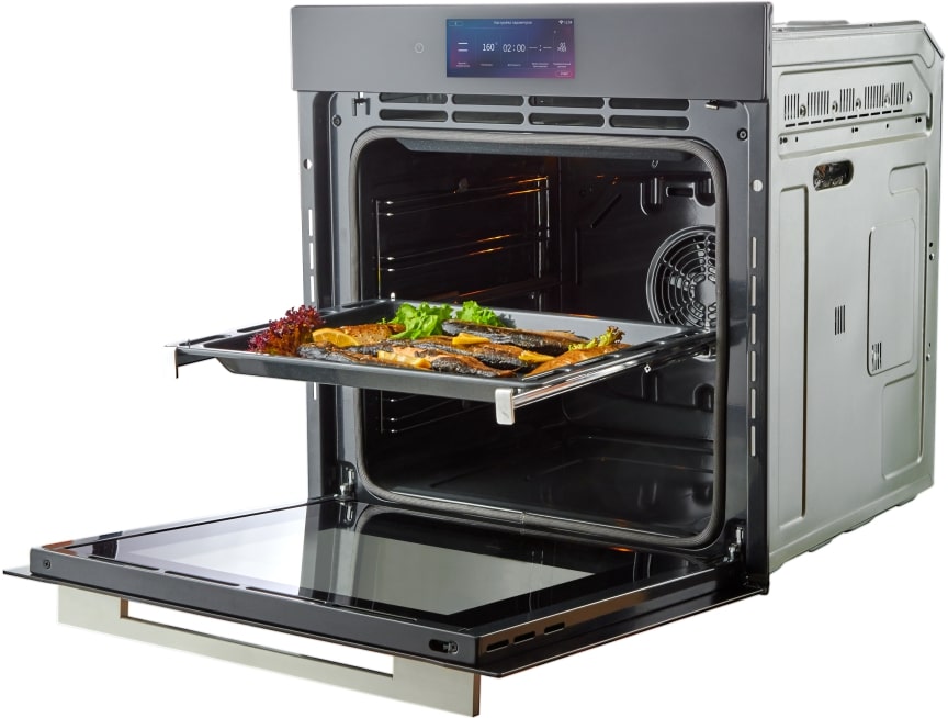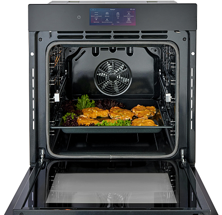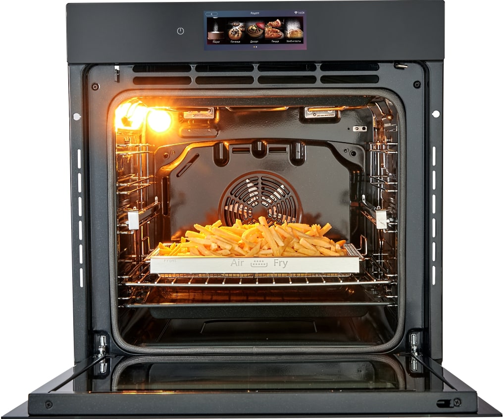 Духовой шкаф BMP 60.4 S оснащен пиролитической очисткой при температуре 480-500°C, превращающей жир в пепел, который легко удалить салфеткой. Автоматические программы Pro Cook помогают с рецептами. Управление осуществляется через TFT-дисплей 7". Противень AirFry обеспечивает максимальный доступ горячего воздуха для создания хрустящей корочки, делая блюда менее вредными, чем в классической фритюрнице.