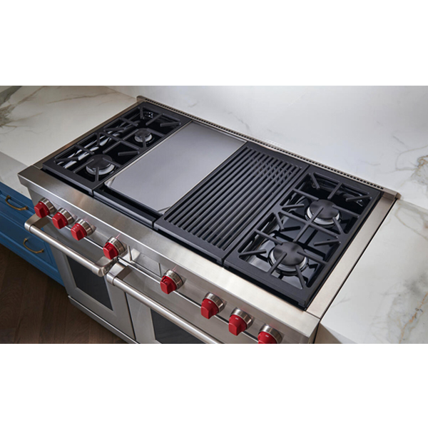 Кухонный блок ICBDF48450CG выполнен из прочной, высококачественной нержавеющей стали, укомплектован удобной цилиндрической ручкой. Переключатели управления могут быть выполнены в трёх цветах: фирменном красном, чёрном либо стальном. Благодаря такому стилистическому решению, ICBDF48450CG создаёт целостные образы как частных, так и профессиональных кухонных зон, прекрасно сочетаясь со всей линейкой приборов Sub-Zero/Wolf.