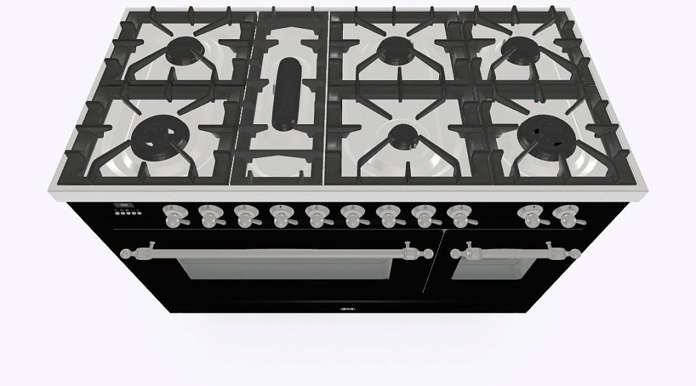 • Тип конфорок: 7 газовых, горелка для рыбной кастрюли, двухконторная конфорка DUAL