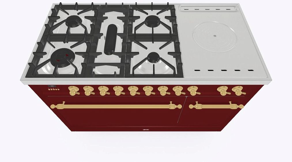 - Тип конфорок: 5 газовых, чугунная тарелка «Coupe de Feu» с кольцами