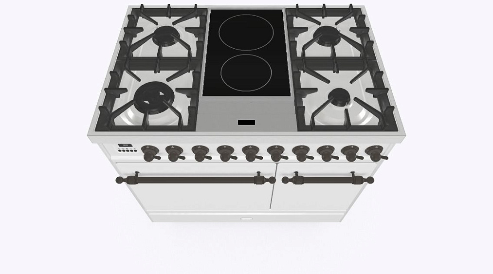4 газовых, 2 индукционные варочные зоны, двухконторная конфорка DUAL