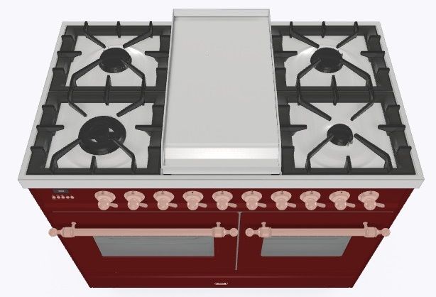 • Тип конфорок: 4 газовые конфорки, Dual конфорка, жарочная поверхность Fry Top