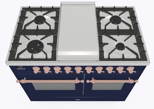 • Тип конфорок: 4 газовые конфорки, Dual конфорка, жарочная поверхность Fry Top