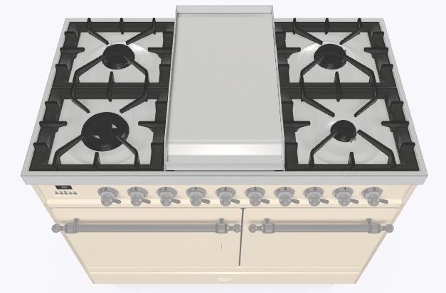 • Тип конфорок: 4 газовые конфорки, WOK конфорка, жарочная поверхность Fry Top