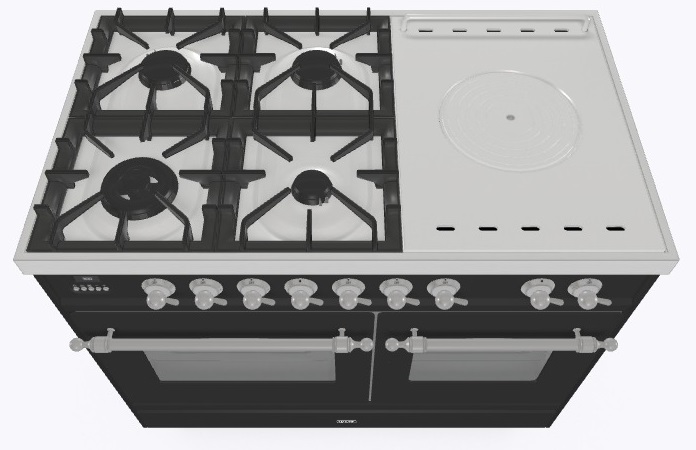 4 газовые конфорки, Dual конфорка, жарочная поверхность Coup de Feu