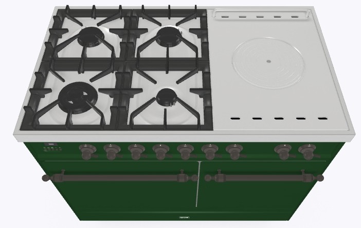 - Тип конфорок: 4 газовые конфорки, WOK конфорка, жарочная поверхность Coup de Feu