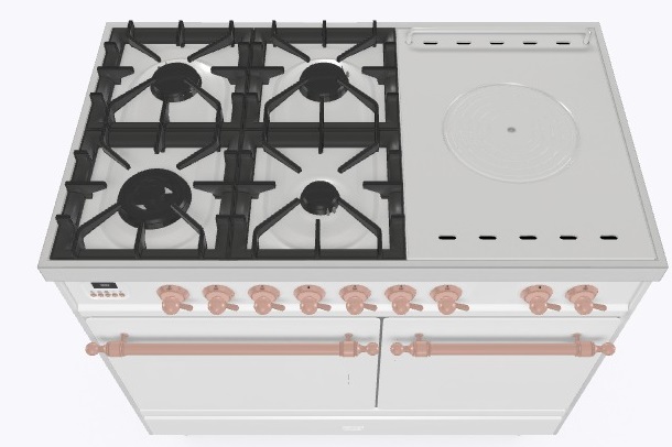• Тип конфорок: 4 газовые конфорки, WOK конфорка, жарочная поверхность Coup de Feu