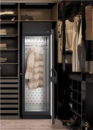 Профессиональный шкаф для бережного хранения меховых изделий. Вместимость - 3 шубы или комбинация меховых и шерстяных вещей. Специальный режим автоматического охлаждения до -10°C 1 раз в месяц уничтожает личинки моли. Герметичная дверь с УФ-защитой и механическим замком сохраняет идеальные условия (влажность 50-70%). Энергоэффективное светодиодное освещение и тихая работа (не более 55 дБ). Сенсорное управление с возможностью индивидуальных настроек.
