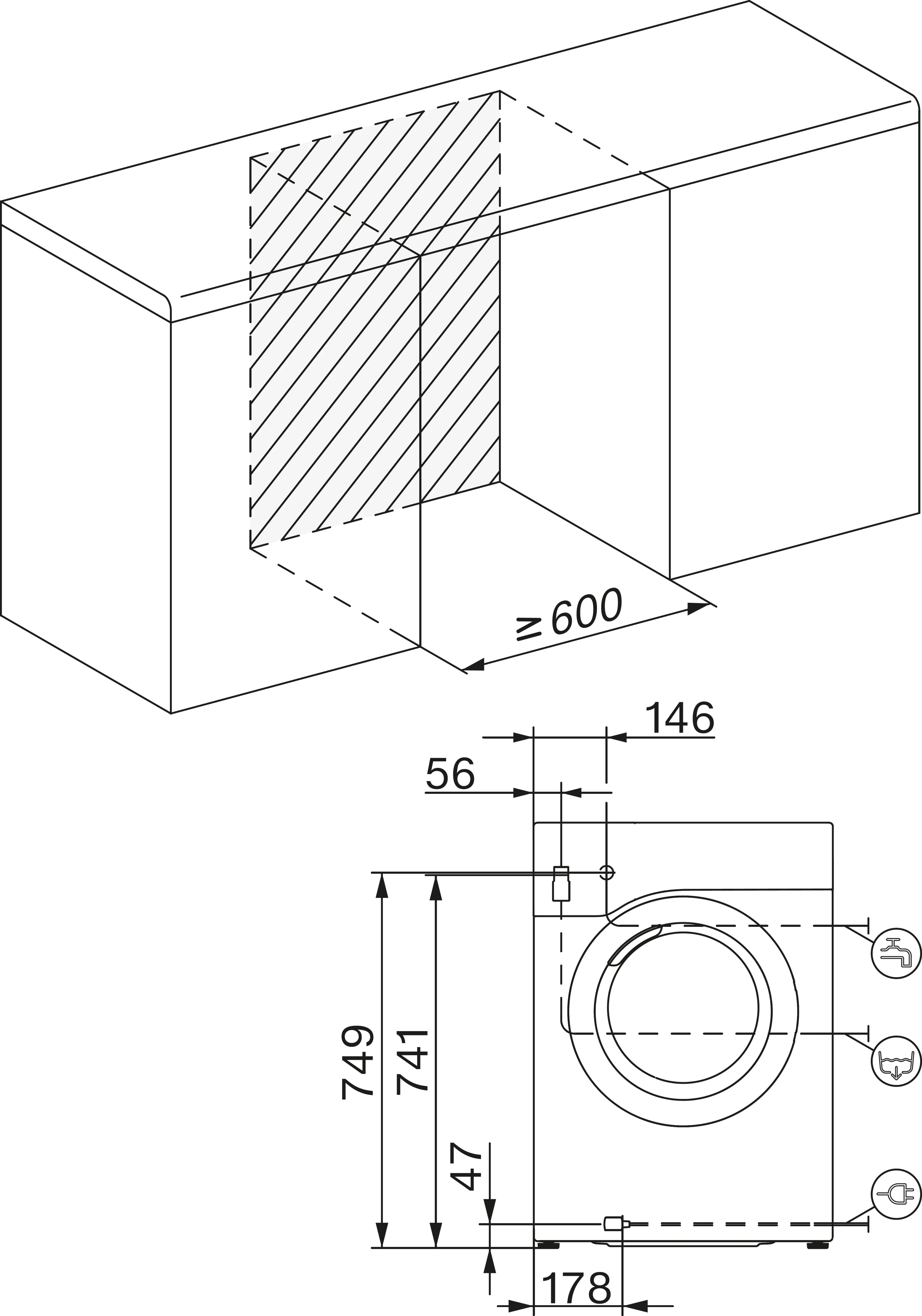 Уровень шума при работе не превышает 68 дБ, а потребление энергии за 100 циклов составляет всего 40 кВт. Модель можно устанавливать отдельно, в паре с сушильной машиной или в колонну с использованием переходника WTV 501. Габариты (850×596×636 мм) и вес (95 кг) делают ее удобной для размещения в стандартных нишах.