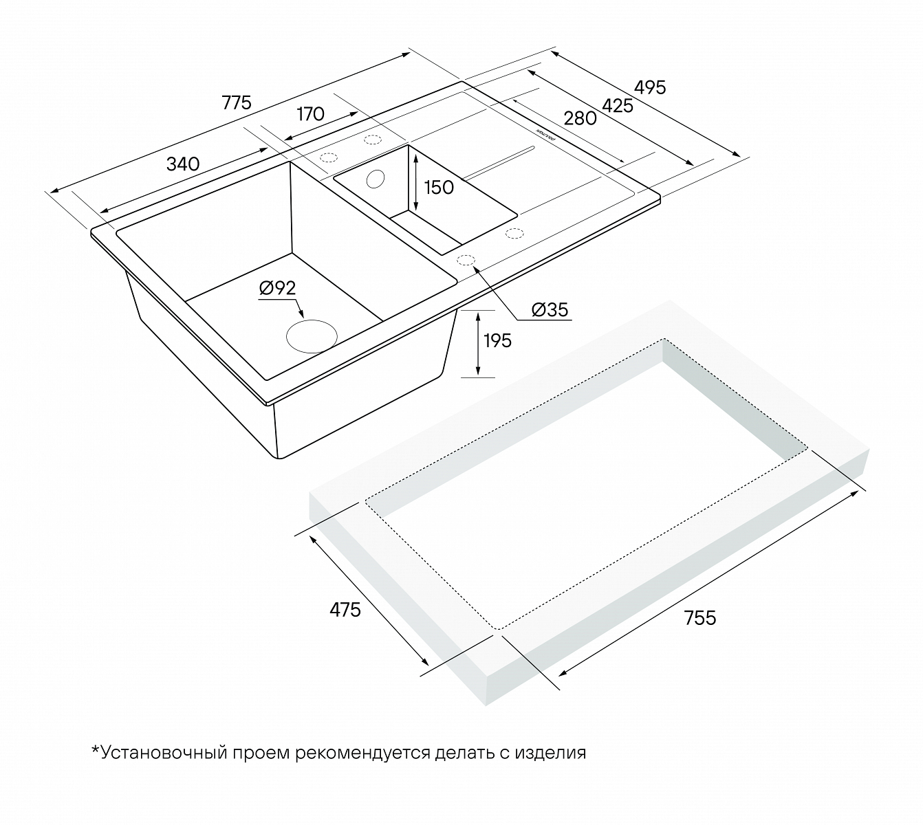 Отверстие под смеситель