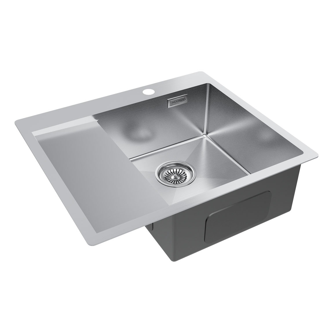 Габариты мойки 590х510 мм, функциональное плоское крыло может служить дополнительной рабочей поверхностью. Возможен монтаж вровень со столешницей или врезной монтаж мойки.