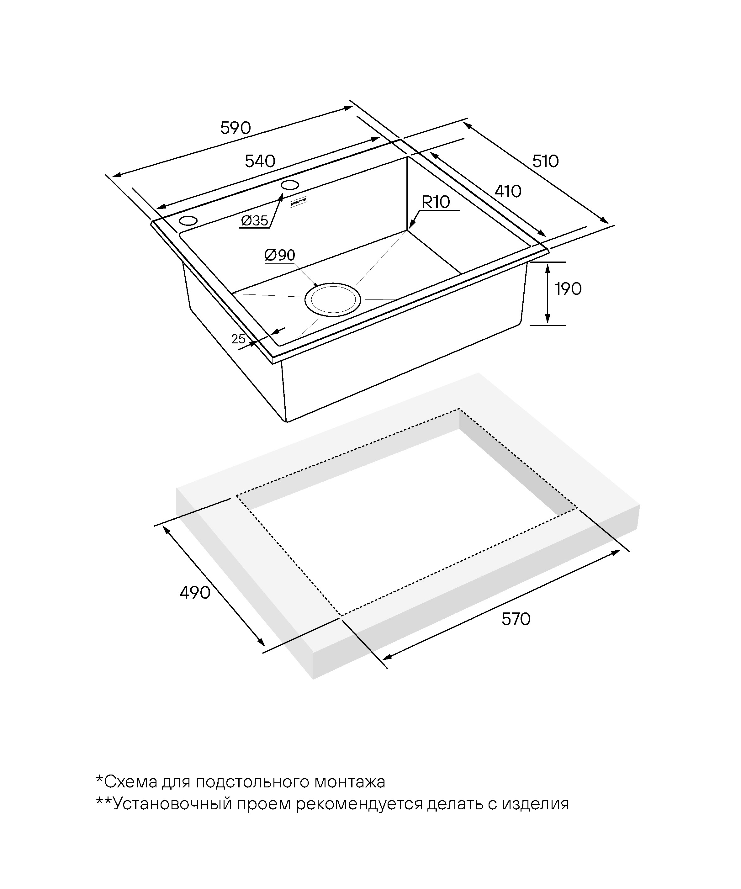 Мойка кухонная из нержавеющей стали KRONER-EDGE 59.