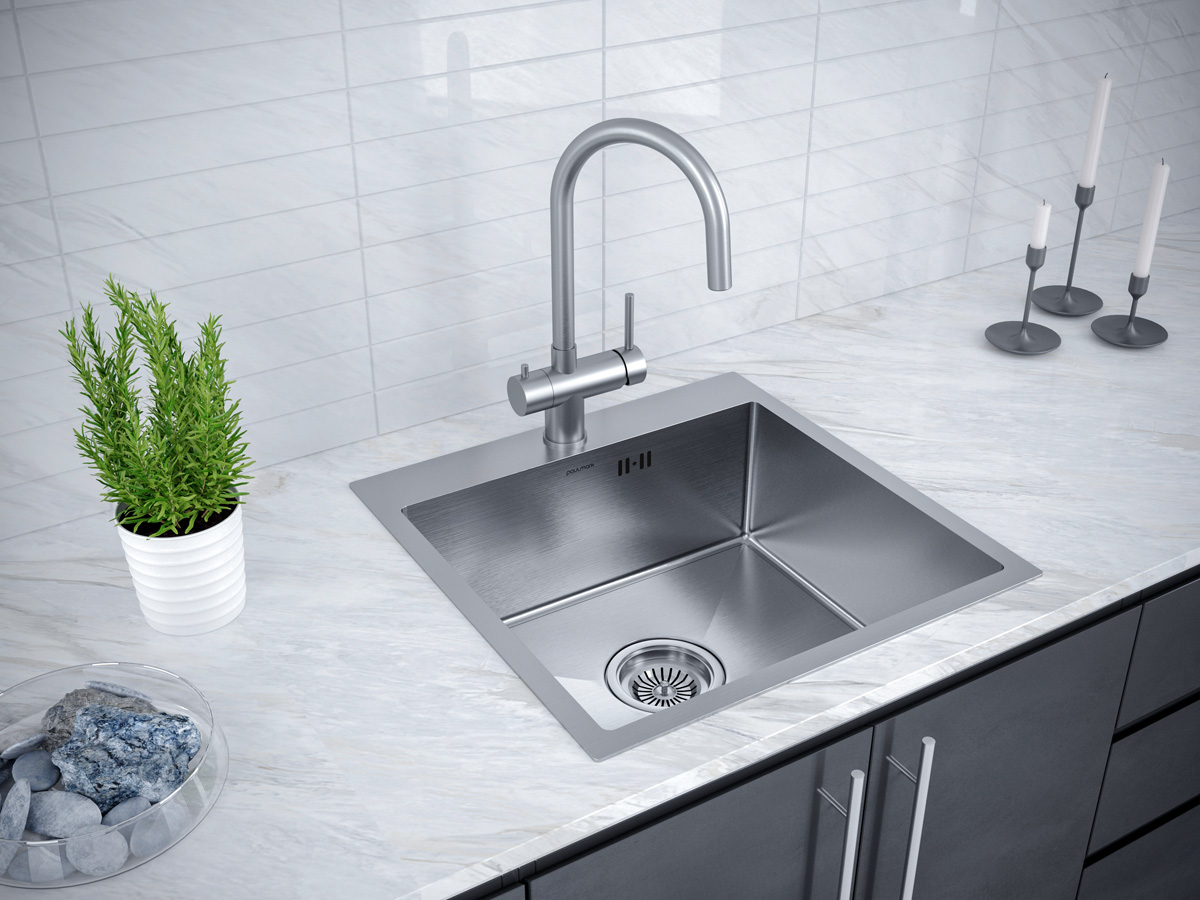 Габариты мойки составляют 590х510 мм, вместительная чаша обеспечивает максимальное пространство для мытья посуды. Возможен монтаж вровень со столешницей или врезной монтаж мойки.