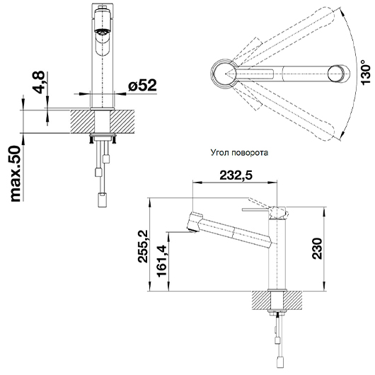 Смеситель AMBIS-S 523119 Blanco нержавеющая сталь