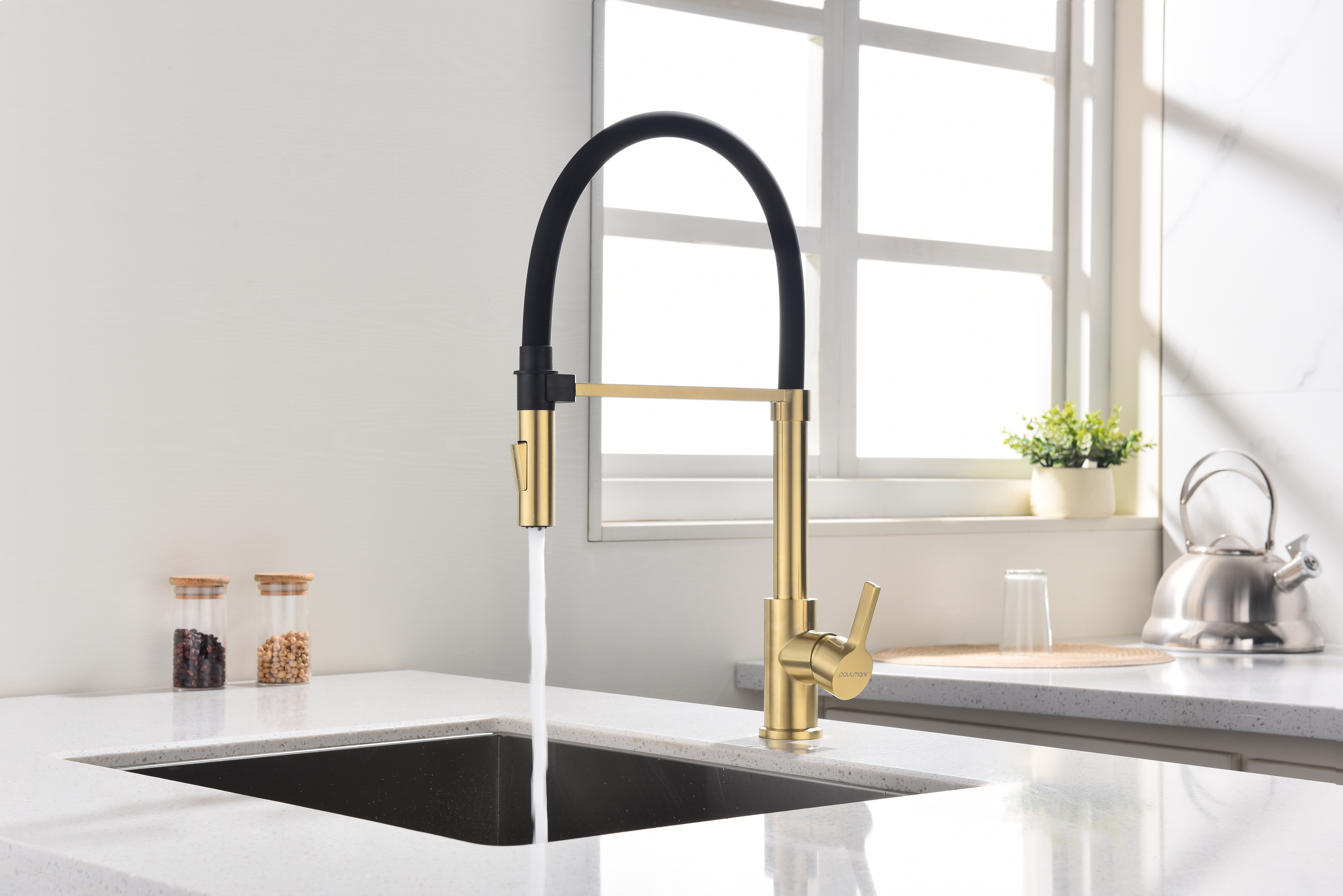 Смеситель для кухни HALT изготовлен из высококачественной латуни, которая отвечает высочайшим европейским стандартам качества, не содержит свинца, не разрушается со временем и безопасна для здоровья.