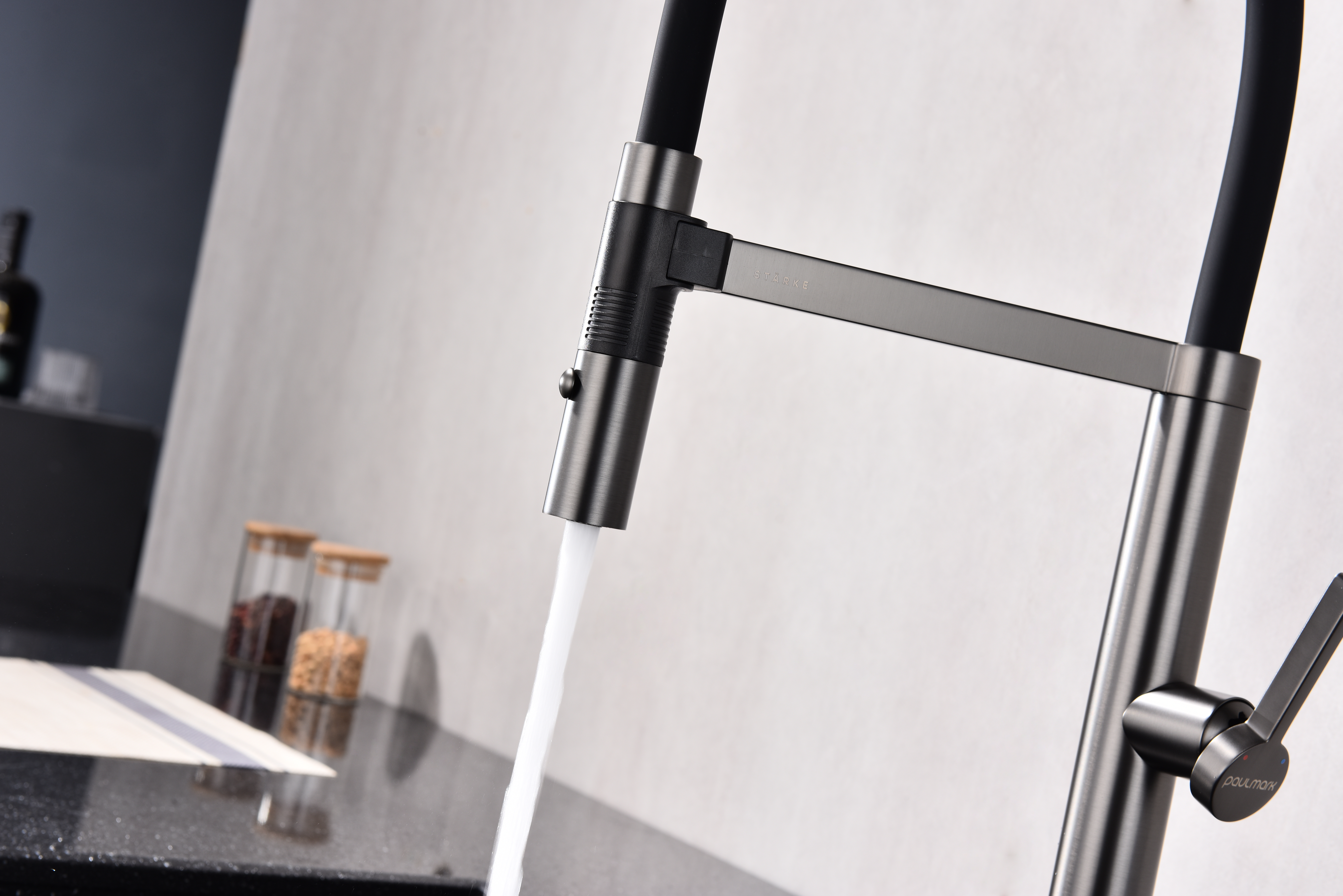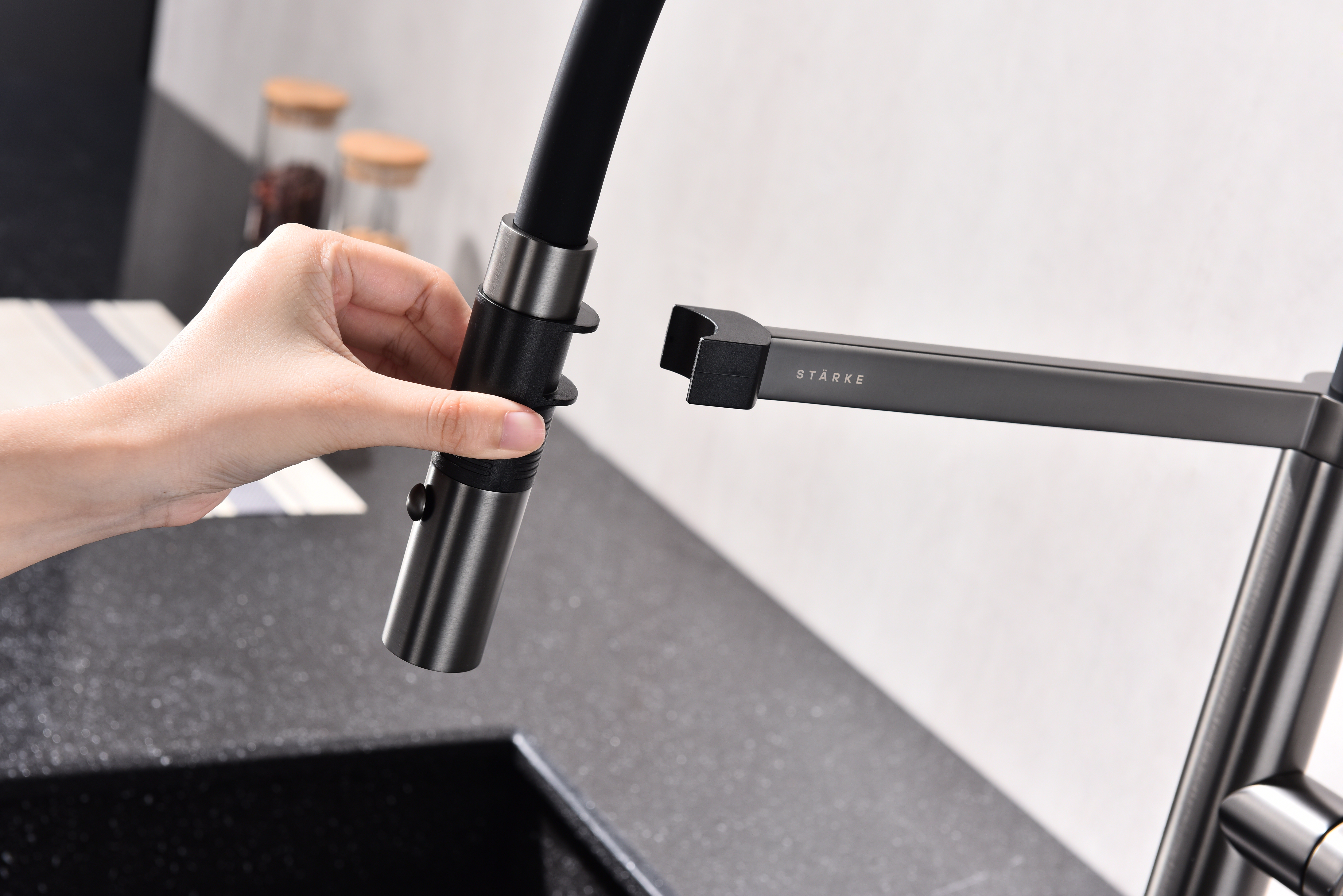 Излив смесителя выполнен из высокопрочного силикона. Конструкцией предусмотрен магнитный механизм фиксации излива.