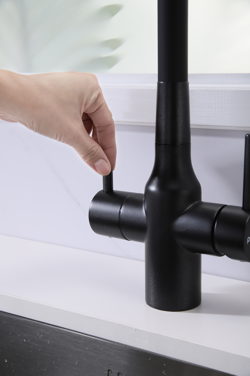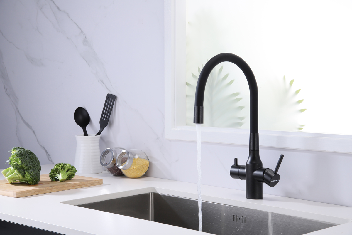 Смеситель для кухни SALIX c возможностью подключения системы фильтрации питьевой воды изготовлен из высококачественной латуни, которая отвечает высочайшим европейским стандартам качества, не содержит свинца, не разрушается со временем и безопасна для здоровья.