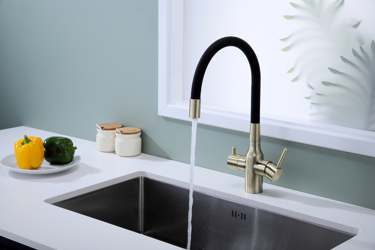 Смеситель для кухни SALIX c возможностью подключения системы фильтрации питьевой воды изготовлен из высококачественной латуни, которая отвечает высочайшим европейским стандартам качества, не содержит свинца, не разрушается со временем и безопасна для здоровья.