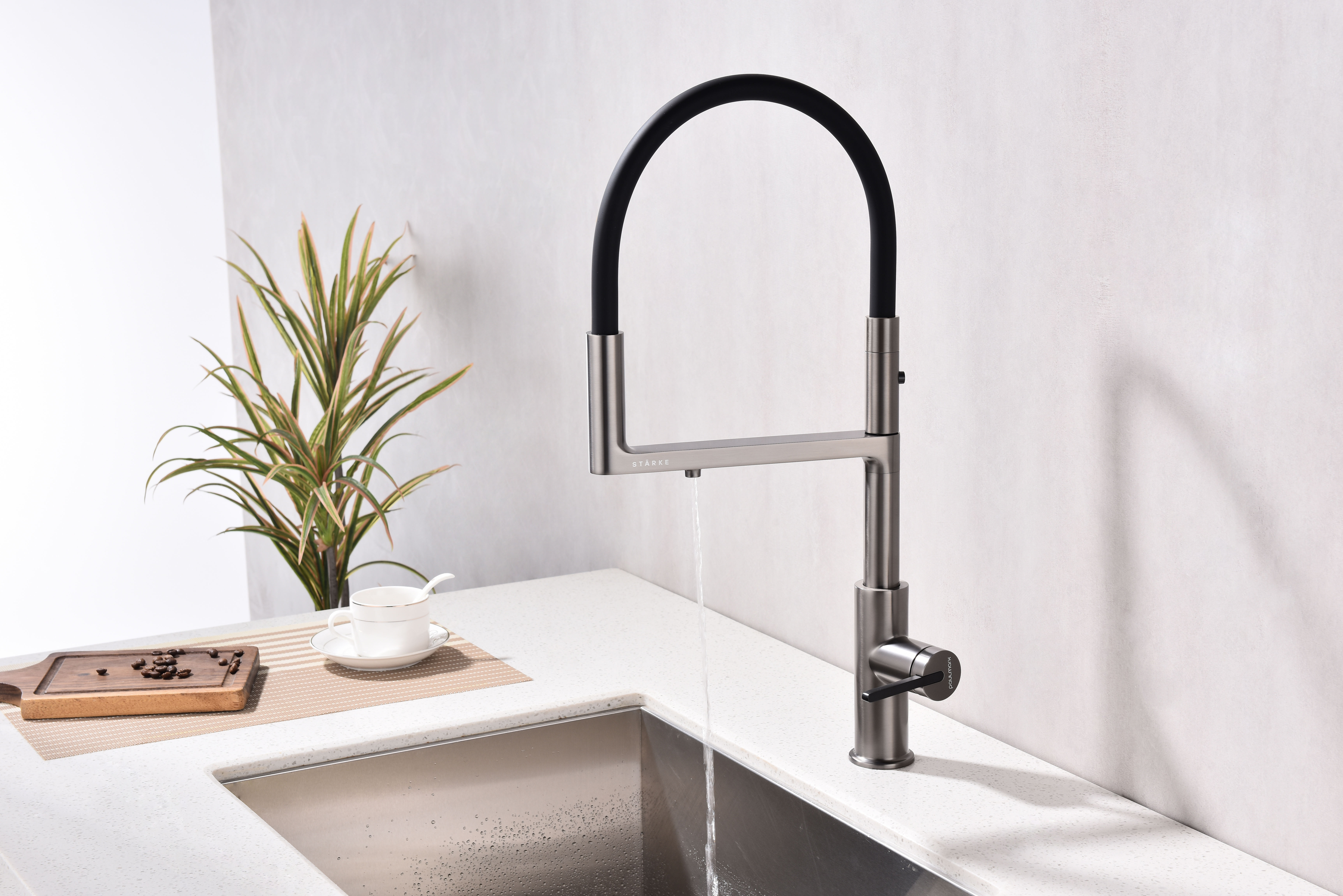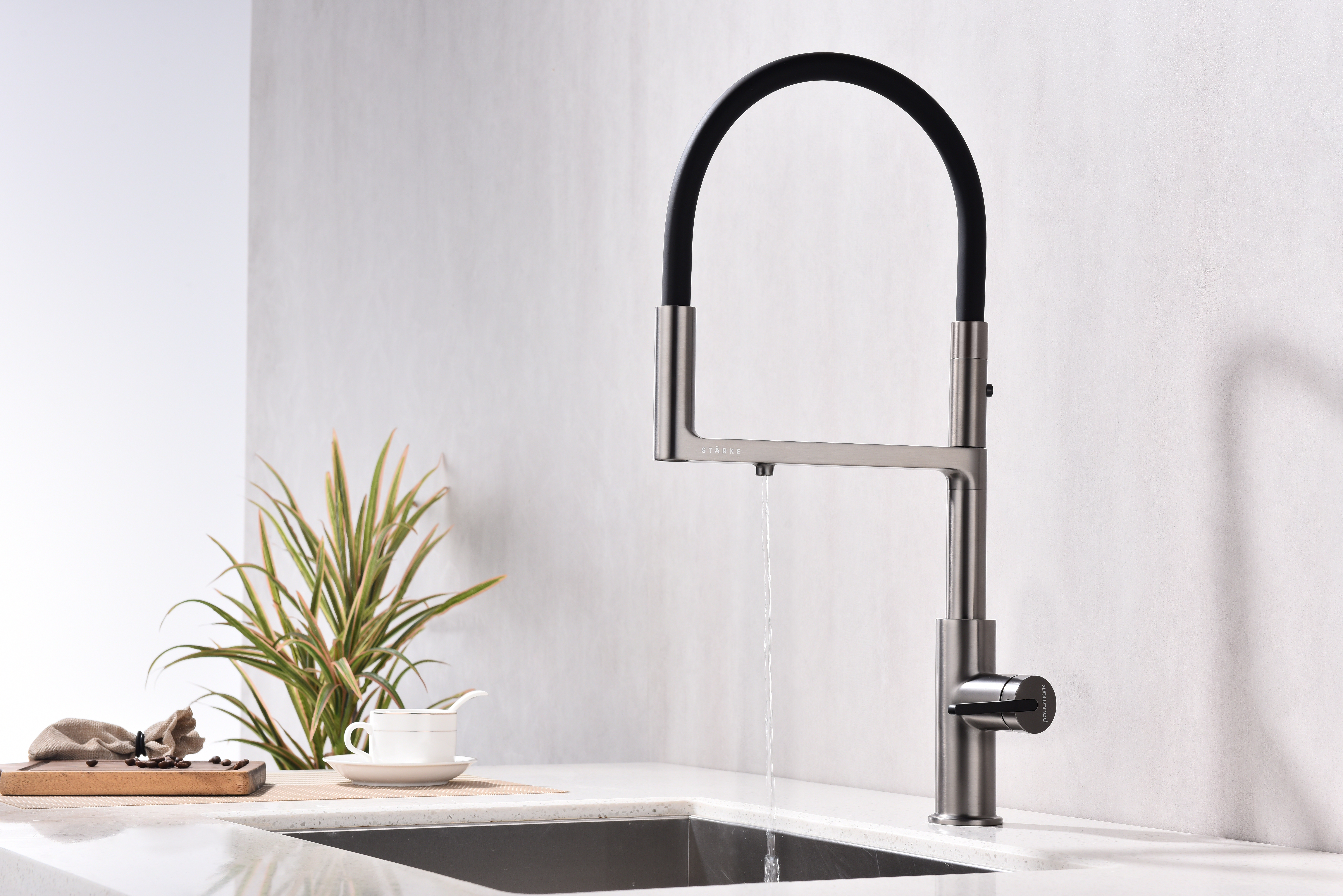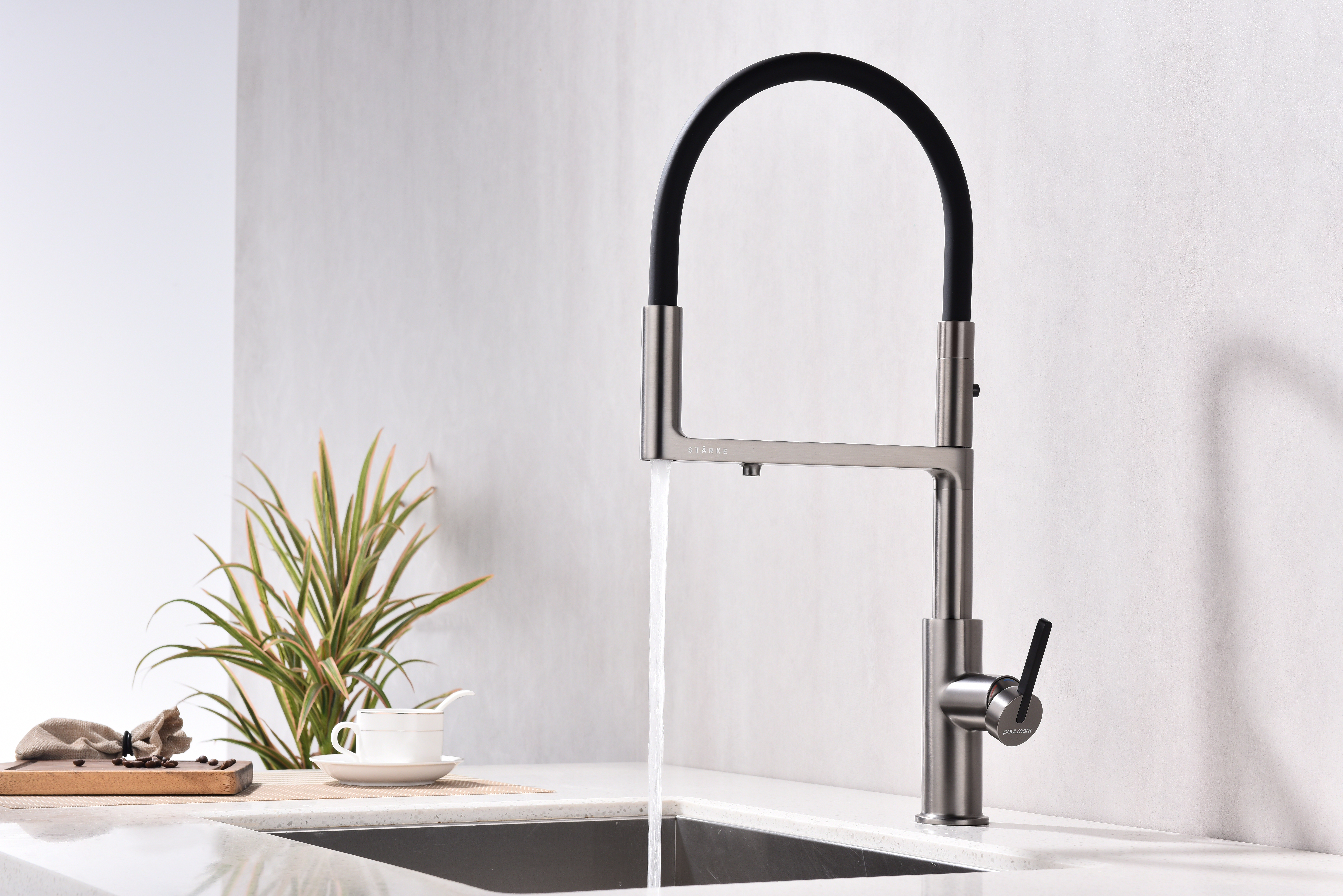 Многофункциональный смеситель для кухни TORNADO – модель премиальной серии «Starke» кухонной сантехники бренда Paulmark изготовлен из высококачественной латуни, которая отвечает высочайшим европейским стандартам качества, не содержит свинца, не разрушается со временем и безопасна для здоровья.