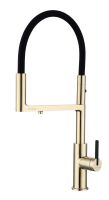Гибкий силиконовый излив оснащен функцией деликатного душа и магнитным механизмом фиксации в задней части латунного корпуса. Он позволяет ополоснуть посуду или мойку в любой ее части или наполнить емкости даже на столе рядом с мойкой.