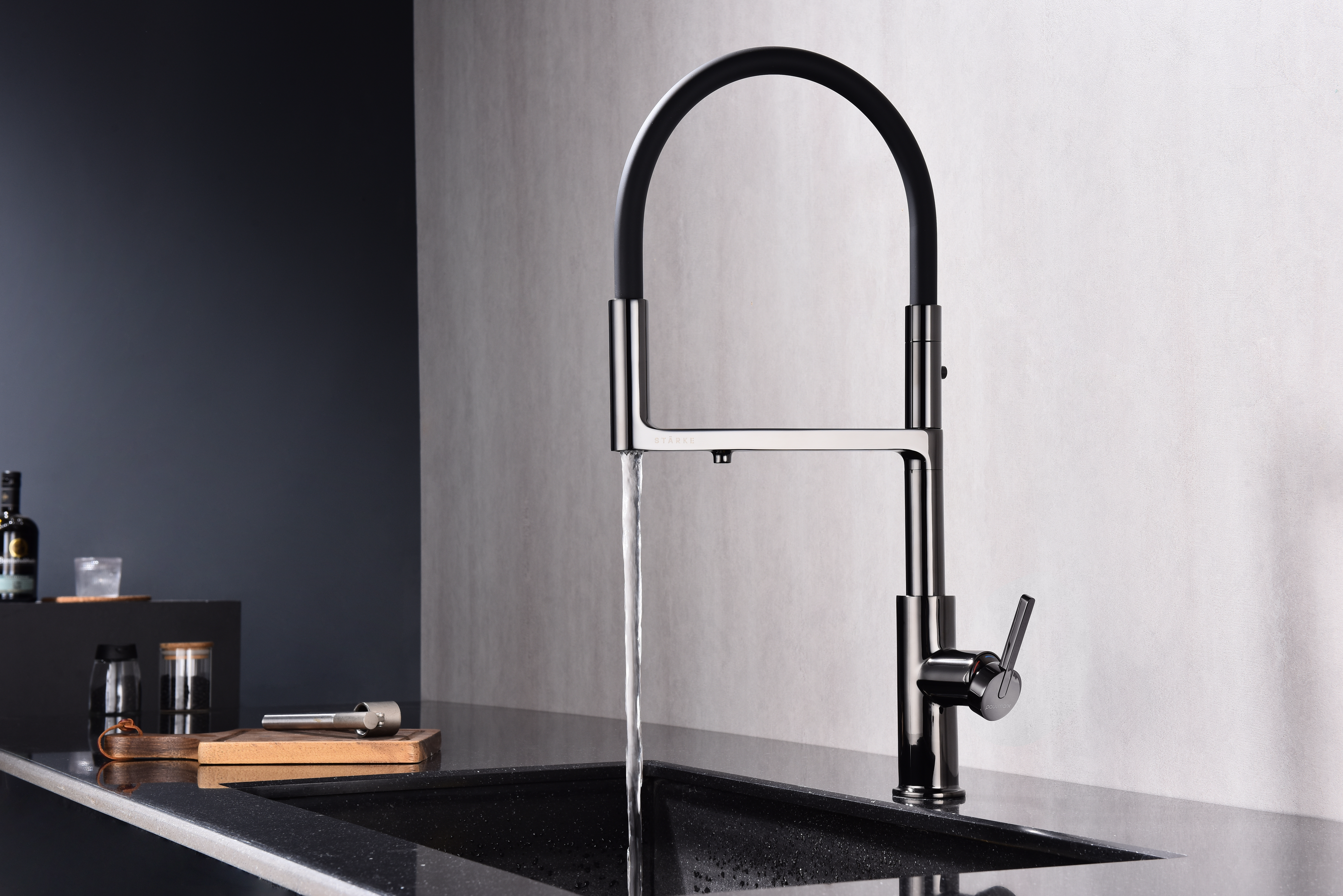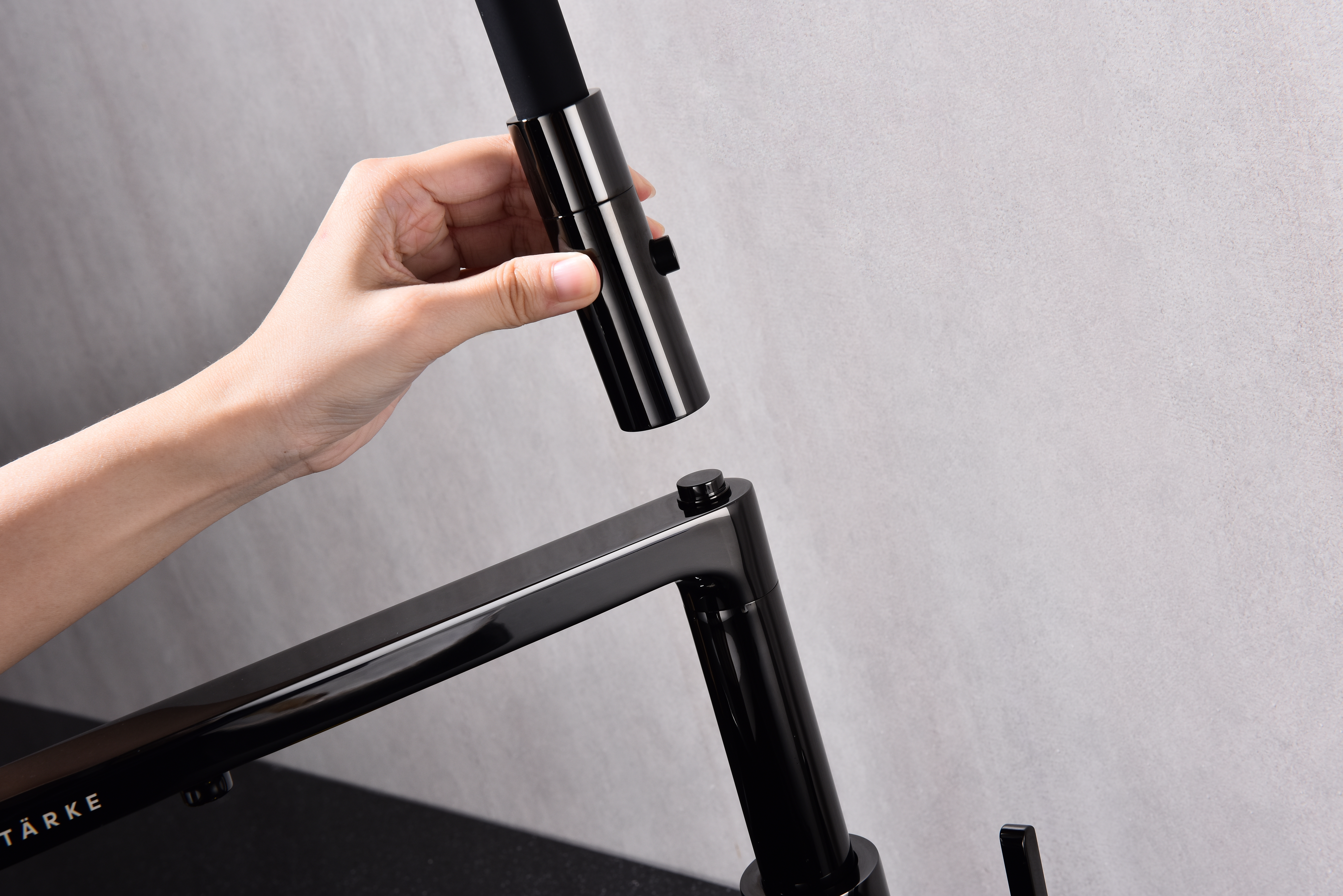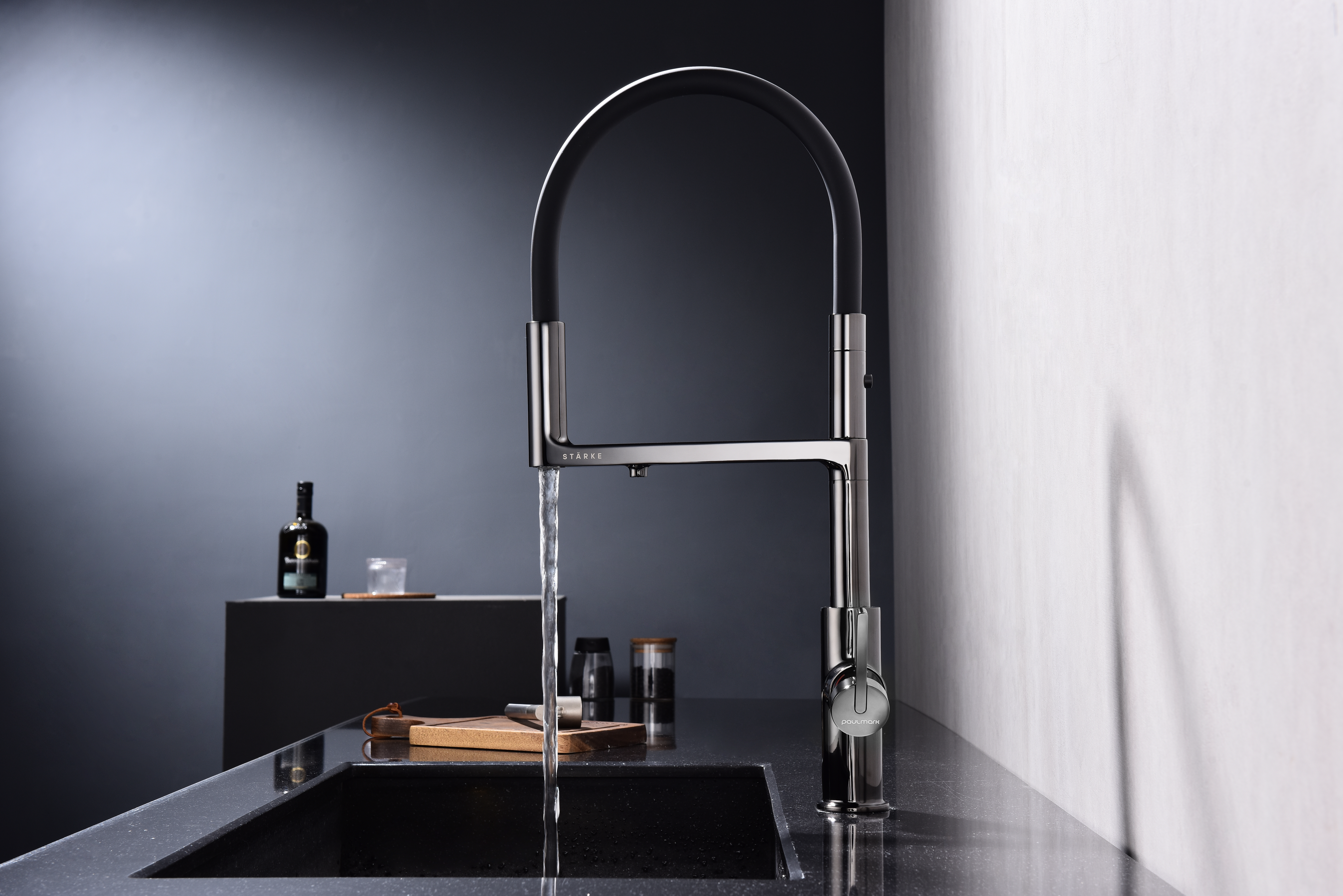 Многофункциональный смеситель для кухни TORNADO – модель премиальной серии «Starke» кухонной сантехники бренда Paulmark изготовлен из высококачественной латуни, которая отвечает высочайшим европейским стандартам качества, не содержит свинца, не разрушается со временем и безопасна для здоровья.
